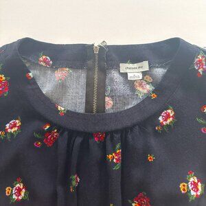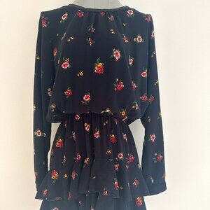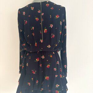 Chelsea Sky Navy Blue Tiered Floral Print Above Knee Dress Long Sleeve Size M
