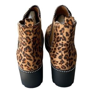 Chelsea Studded Animal Print Leopard Slip-on Platform Lug Booties Size 11 NWT