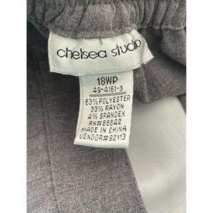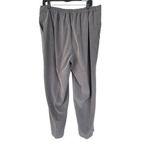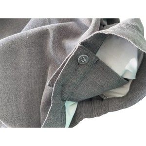 Beautiful pair of women’s light grey dress pants with a 6” zipper, double button closure and an elastic back waist. Very comfortable mix of 63% polyester, 33% rayon, and 4% spandex.