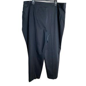 These vintage black cotton twill flat front pants from Chelsea Studio are perfect for travel, casual wear, workwear, or business attire. They feature a comfortable and slightly stretchy fabric with a high-rise waist (greater than 10.5 in) and a straight leg style with a 28-inch inseam. Designed with convenience in mind, these pants are equipped with pockets for your essentials and are wrinkle-resistant and breathable for all-season wear. These Grunge styled plus-size pants (waist size 48 in) are made of cotton/spandex material that is machine washable and easy to care for. Get ready to look and feel your best in these stylish and versatile pants.