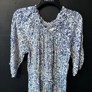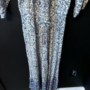 Chelsea Taylor Medium Coastal Boho Maxi Dress Blue White Paisley Print like New