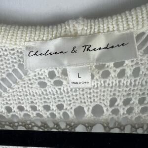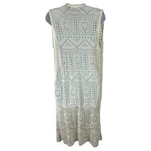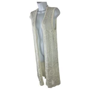 Chelsea & Theadore Cardigan Cream Crochet Open Sleeveless Duster Boho sz L