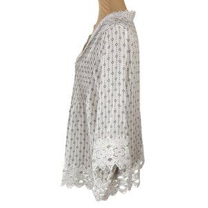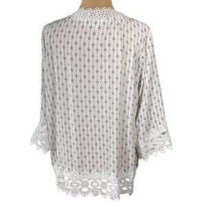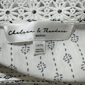 Chelsea & Theadore Lace Trim Blouse Size 1X Black White V-Neck