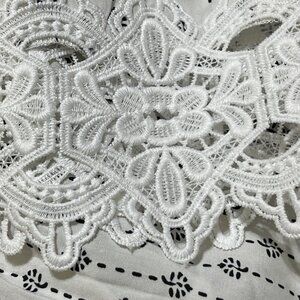 Elevate your wardrobe with this Chelsea & Theadore blouse, featuring elegant lace trim and a flattering V-neck design. Perfect for any occasion, this fashionable top offers a chic black and white color scheme and comfortable fit.