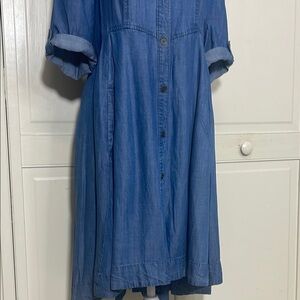 Chelsea & Theadore Women’s Blue Denim Shirt Dress Knee-Length Chambray Sz S