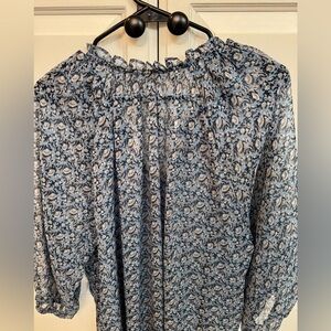 Chelsea & Theodore 1X Blue Floral Relaxed Blouse