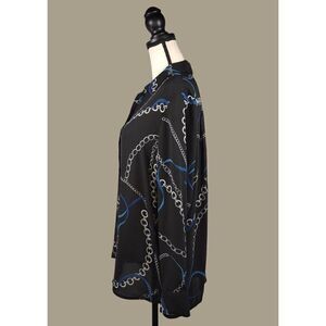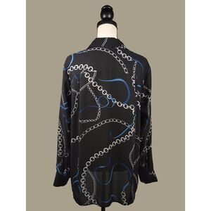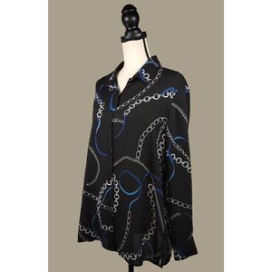 Chelsea & Theodore Black Long-sleeve Chain Print Button Front Blouse Size Large