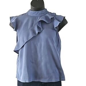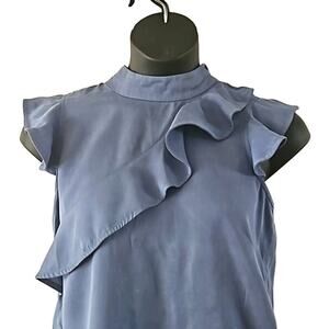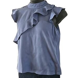 Chelsea & Theodore Blue Sleeveless Ruffle Front Blouse - Size Large