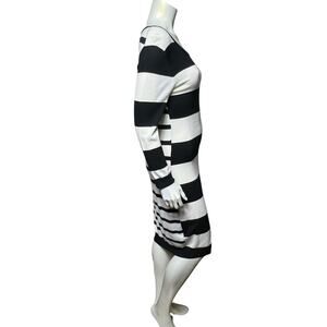 Chelsea & Theodore Bold Black White Striped Midi Dress Size L Sweater