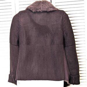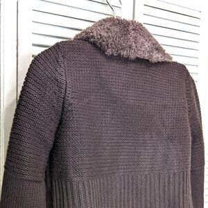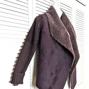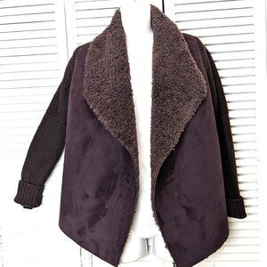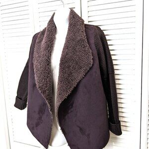 Chelsea & Theodore Brown Suede Faux Fur Open Sweater Jacket Small
