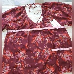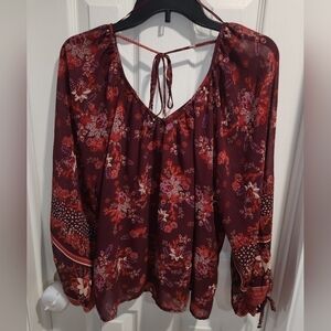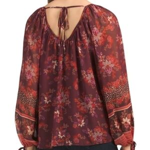 Chelsea & Theodore Burgundy mixed floral/ paisley / dot prints blouse NWT