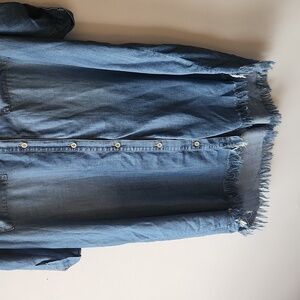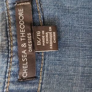 Chelsea & Theodore Button Up Shirt Dress Blue Chambray Raw Hem Womens Size 1x
