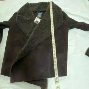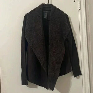Chelsea & Theodore Cardigan Sweater Brown Faux Fur Women’s Size Small