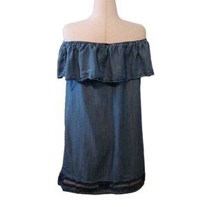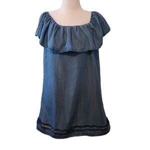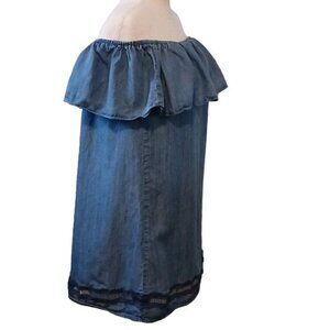 Chelsea & Theodore Denim Off the Shoulder Ruffle Mini Dress Blue Size L