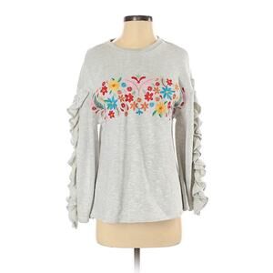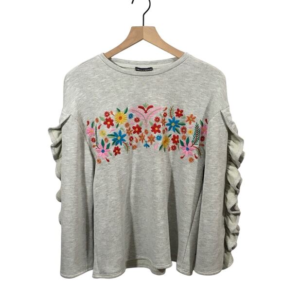 Chelsea & Theodore Embroidered Ruffle Sweatshirt - Gray - Small