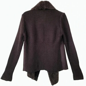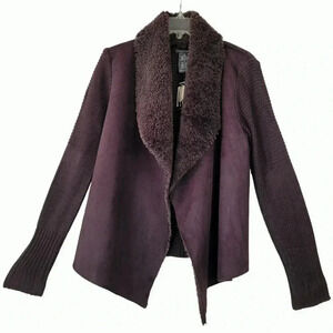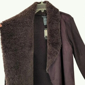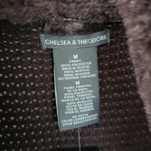 Super stylish and super warm this new with tags Chelsea and Theodore for open cardigan is truly stunning!! Has tons of soft, faux fur feel on the inside chest area with chunky sweat sweater on the arms and through the back area. Faux suede but feels very real! 100% acrylic front and 100% polyester, please hand wash this cold separately lay flat to dry or you can dry clean retails for $98! Because this is a chunky style, I think a small could fit this as well doing my best for measurements as this is not a closed cardigan, but if it were closing, it measures approximately 18 1/2 inches the asymmetrical line for the length reaches all the way to Approximately 27 1/2 inches.