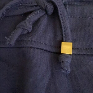 Chelsea & Theodore Jersey Knit Navy Blue Dress in a size 4. Great pre-owned condition. One missing bead on the drawstring. Cap sleeves, rayon & spandex blend, elastic band with drawstring, gold buttons on bodice section, 2 flap pockets with button closure. Approximate measurements: 16 1/2" bust, 15" elastic band with drawstring, 37 1/2" length measured straight with no blouson effect.