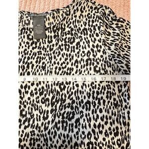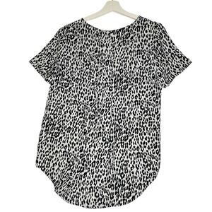 Chelsea & Theodore Leopard White Black Blouse Short Sleeves Scoop Neck Sz M