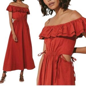 Chelsea & Theodore 100% Linen Embroidered Boho Sleeveless Top Size large new with tag Sleeveless Printed linen Embroidery at neck and hem Braided tie with lion pom tassels Darts at bust Pale red print Pit to pit seam to seam 22.5” Shoulder to hem 26.5” 100% linen Hand wash New with tag D11-2 Boho, sleeveless, embroidered, vacation, summer, cool, natural fiber Chelsea & Theodore 100% Linen Embroidered Boho Sleeveless Top