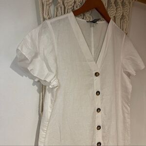 Chelsea + Theodore Linen Rayon Midi Dress SZ MED - White Minimalist Sustainable