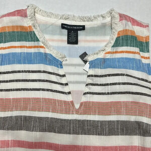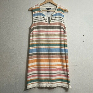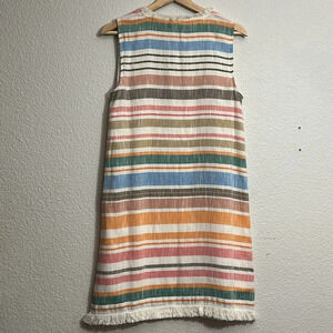 Chelsea & Theodore Multi Striped Sleeveless Dress Fringe Hem Size Small NWT