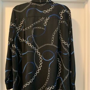 Chelsea & Theodore Navy Chain Link Chiffon Blouse. Size: XL. Button up style. VGC.