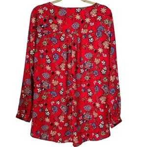 Chelsea & Theodore Red Floral Popover Top Size Large