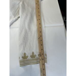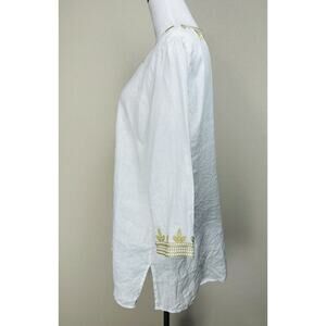 Chelsea & Theodore Size Large Tunic 100% Linen White & Gold Embroidered Casual