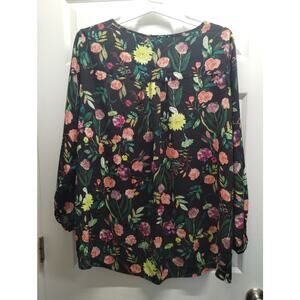 Chelsea & Theodore Size XXL Black Pink Floral Layered Hem Lightweight V-Neck Top