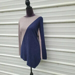 Chelsea & Theodore Womens Asymmetrical Sweater Cashmere Beige Navy Long Sleeve M