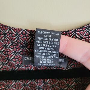 Chelsea & Theodore Womens Blouse Plus Size 1x Red Burgundy Black Geometric Boho