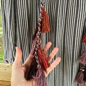 Chelsea & Theodore Women's Grey Striped Embroidered Boho Mini Dress Size M