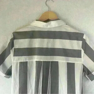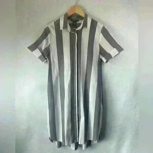 Chelsea & Theodore Women's Grey White Striped Button Up T Shirt Dress Size S