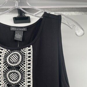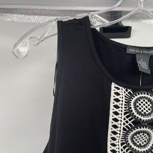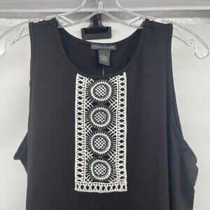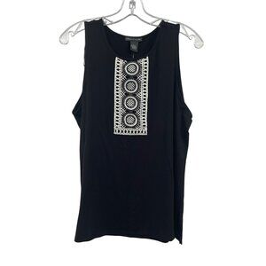 Chelsea & Theodore Womens Tank Top Embroidered Black/Multi Size Large New