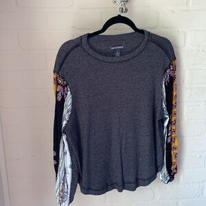 Chelsea & Theodore blouse waffle knit pattern patchwork sleeves xs soft Cozy boho blouse