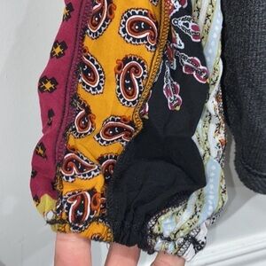 Chelsea & Theodore blouse waffle knit pattern patchwork sleeves xs soft Cozy boho blouse