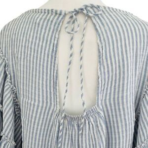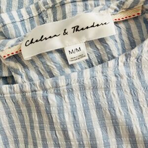 Chelsea & Theodore blue/white striped relaxed fit top, ruffled sleeves size M.