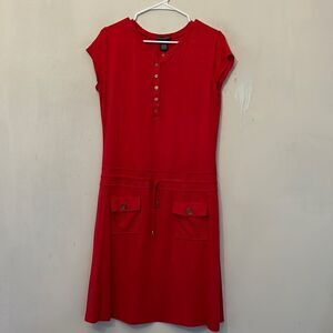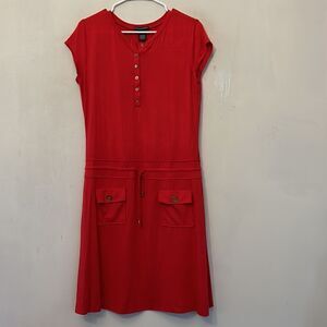 Chelsea & Theodore red cap sleeve button front tie waist dress Size 10