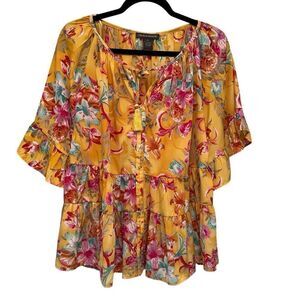 Chelsea & Theodore yellow floral boho blouse