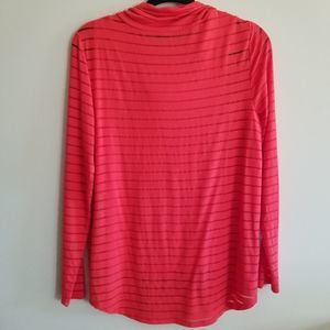 Very pretty orange long sleeve shirt with drawstring cowl neck. This is slightly see thru with a built in tank. Great top for lounging or running errands!