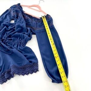 Chelsea & Violet 100% Rayon Navy Short Romper * 100% Rayon with eyelet lace trim * Long sleeve with elastic cuffs * Elastic waistband * Fits oversized size M pre-owned good condition