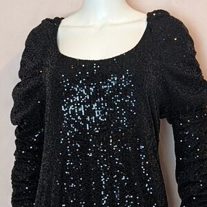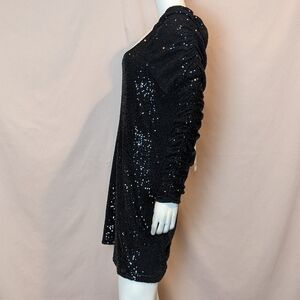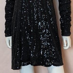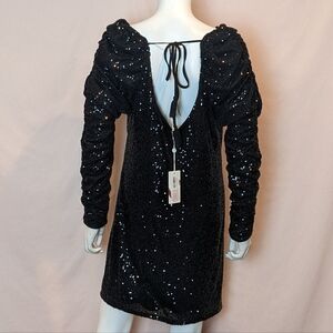 Chelsea & Violet Black Sequin Long Sleeve Backless Mini Dress Large