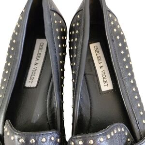 Chelsea & Violet Black Studded Loafers Women's Black And Silver Flats Size 6.5