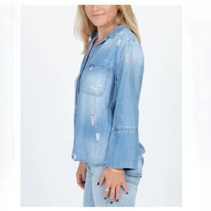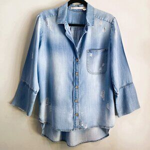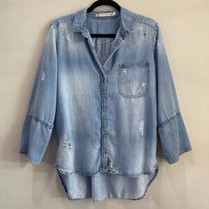 Chelsea & Violet | Chambray Distressed Button-Down Shirt | Size Medium Women's