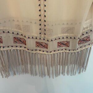 Chelsea & Violet Cream Boho Top Women’s Large Fringe Embroidered Peasant Blouse
