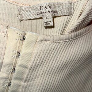 Chelsea & Violet Cream Long Sleeve Bodysuit | Boho Romantic Soft Knit Size L