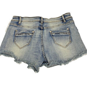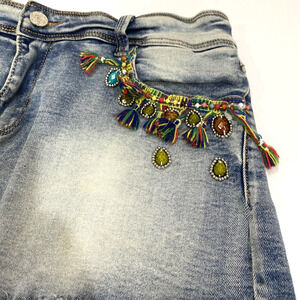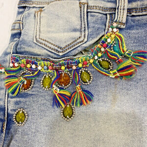 Chelsea & Violet Distressed Denim Shorts Size 29 Fringed Cut Off Beads Tassels