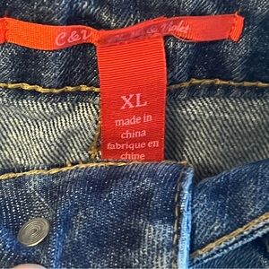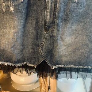 Chelsea & Violet Distressed Denim Skirt with Black Fringe XL