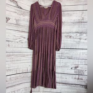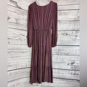 Chelsea & Violet Dress Womens Sz S Floral Midi Paisley Rayon V Neck belted Boho
