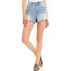 Chelsea & Violet Gaj Lt Blue White Floral Embroidery Frayed Jean Shorts Sz31 NWT